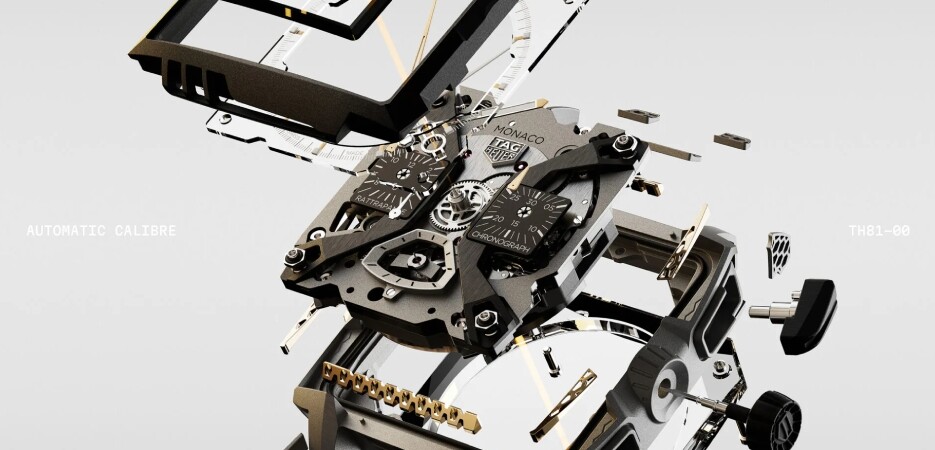 Inside the TAG Heuer Monaco Split-Seconds Chronograph Air 1 beats TAG Heuer’s Calibre TH81-00, a high frequency automatic movement with a 65-hour power reserve that beats at 36,000vph (5 Hz), and that was developed in collaboration between TAG Heuer and the esteemed specialist movement creator Vaucher Manufacture Fleurier.